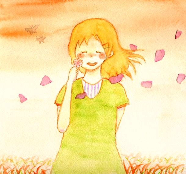 服、髪、空、蝶、そして押し花の花びら。全てのものの色が絶妙です。